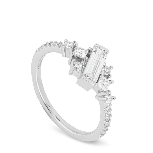 Modernise your jewellery collection with this stunning scatter ring. Featuring dazzling baguette Diamonfire zirconia stones (0.86ct), this ring is sure to be the centre of attention and style up your outfit for any occasion. Why not pair with the matching earrings and pendant for a complete look.